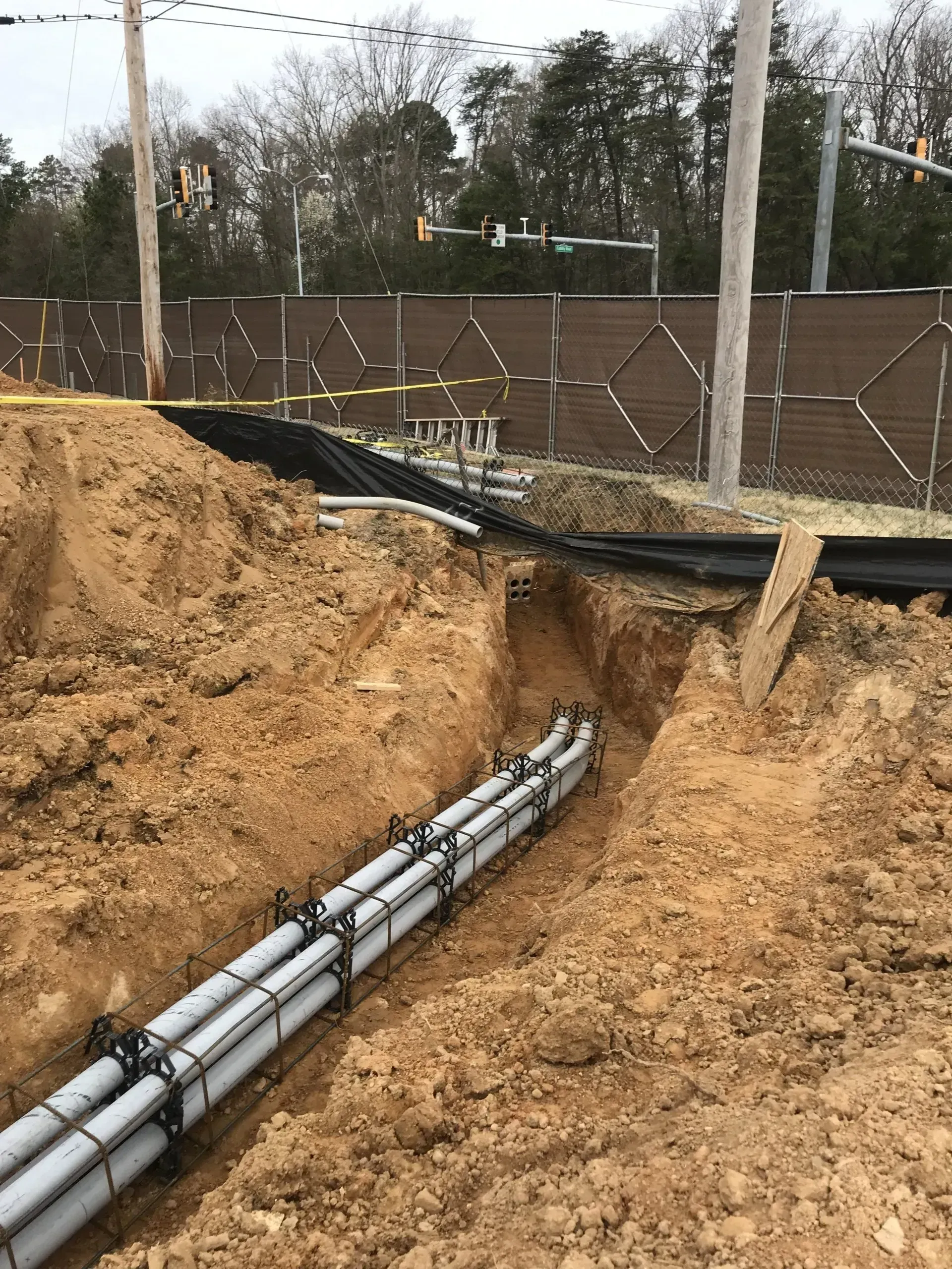 Duct bank shown above: A duct bank is a reinforced protective enclosure, typically made of concrete or PVC, that bundles and shields multiple underground electrical or data conduits from environmental damage and heavy surface loads.